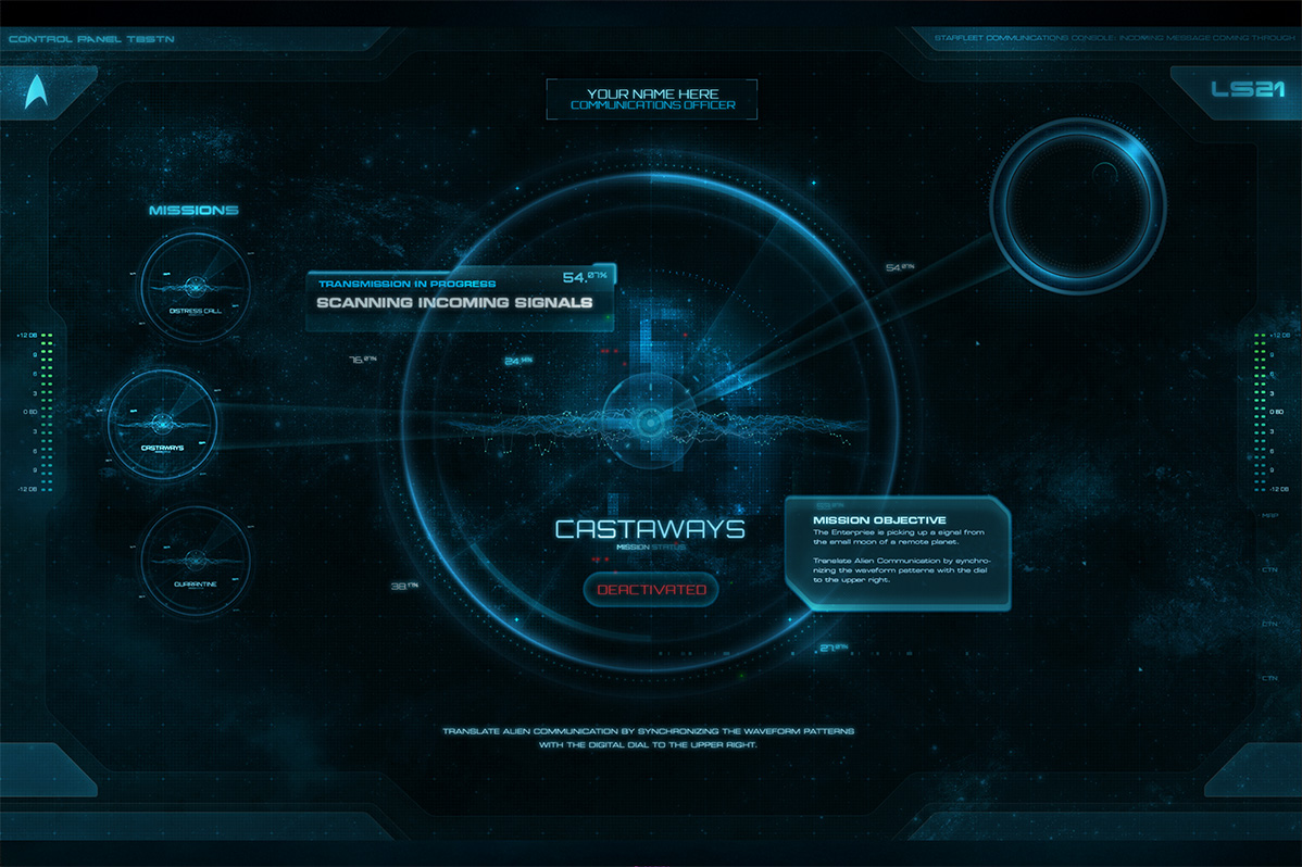 The system wasn’t just decorative—it functioned as a living layer of the experience. Scanning asteroid fields, tracking debris, and interpreting sensor data were all presented through dynamic UI states, giving users a sense of agency and consequence inside the Trek universe.